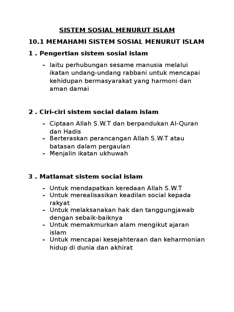 Sistem Sosial Menurut Islam Pai Pdf